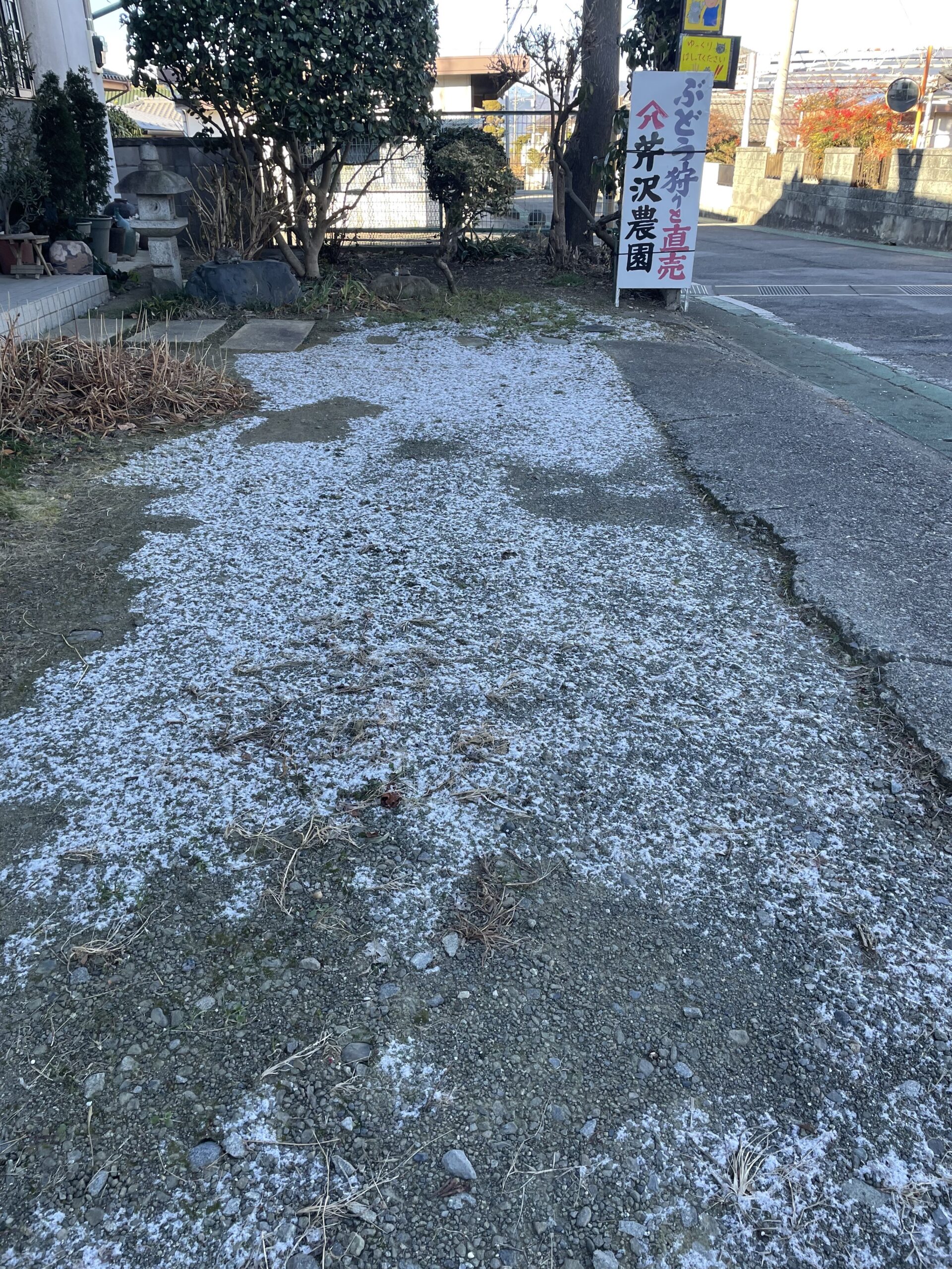 1月2日の夕方 雪が舞い今朝庭がうっすらと雪景色