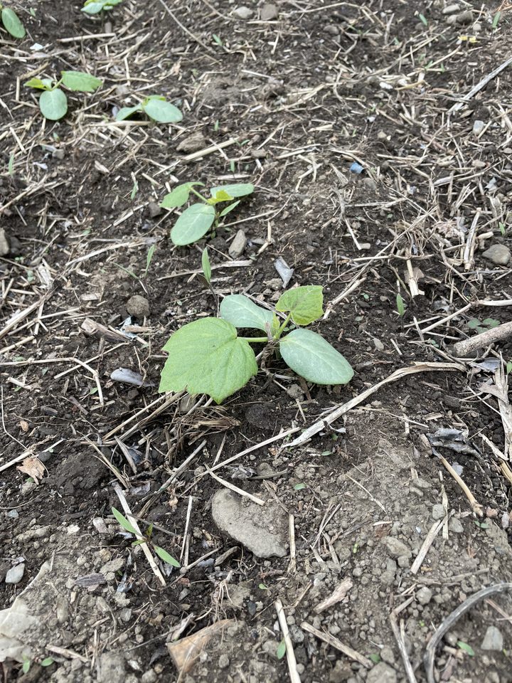 去年の種からゴーヤの芽が出てきた 野菜のページ更新