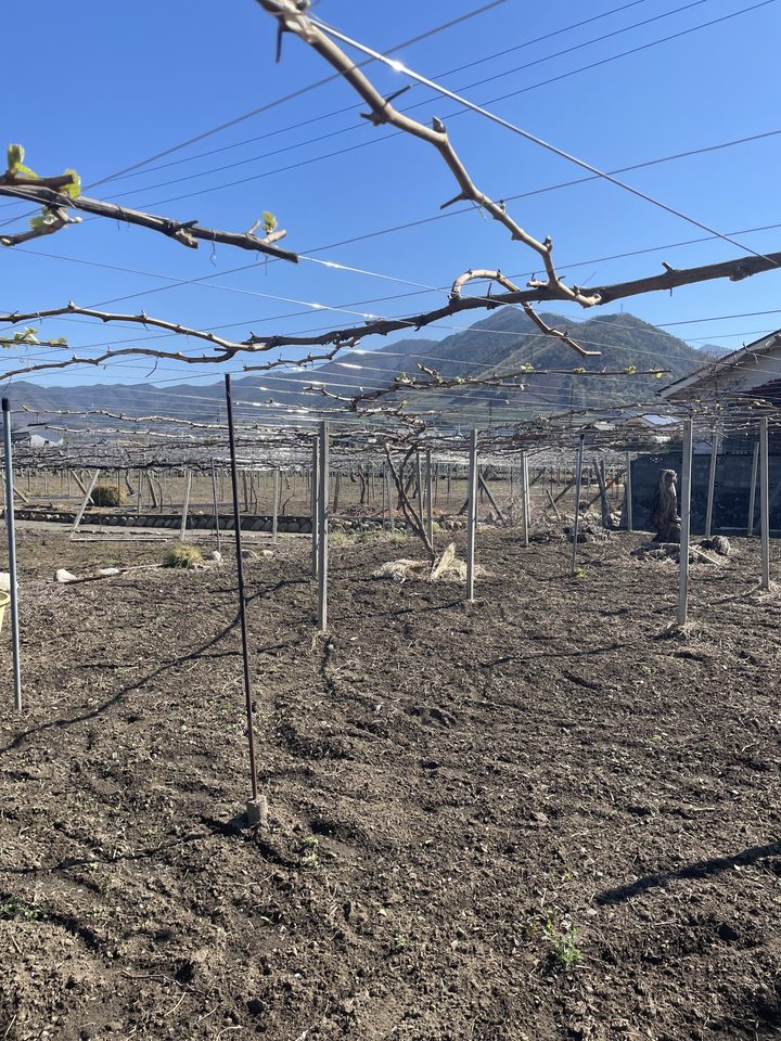 ぶどうの木 木の皮むき作業後 芽吹きを待つ