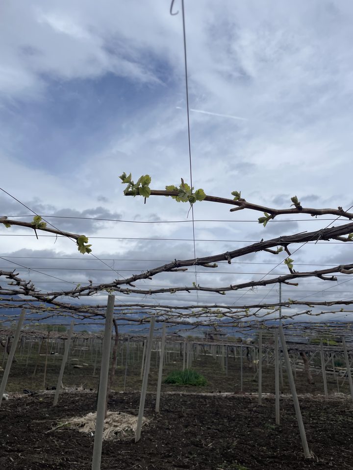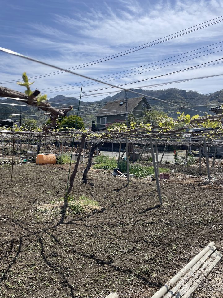 発芽したぶどう 今年も早い 遅霜がくるとまずい