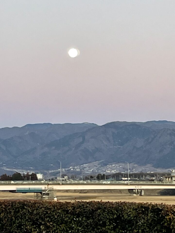 昨夜17時20分 東の空に大きな満月 日が長くなった