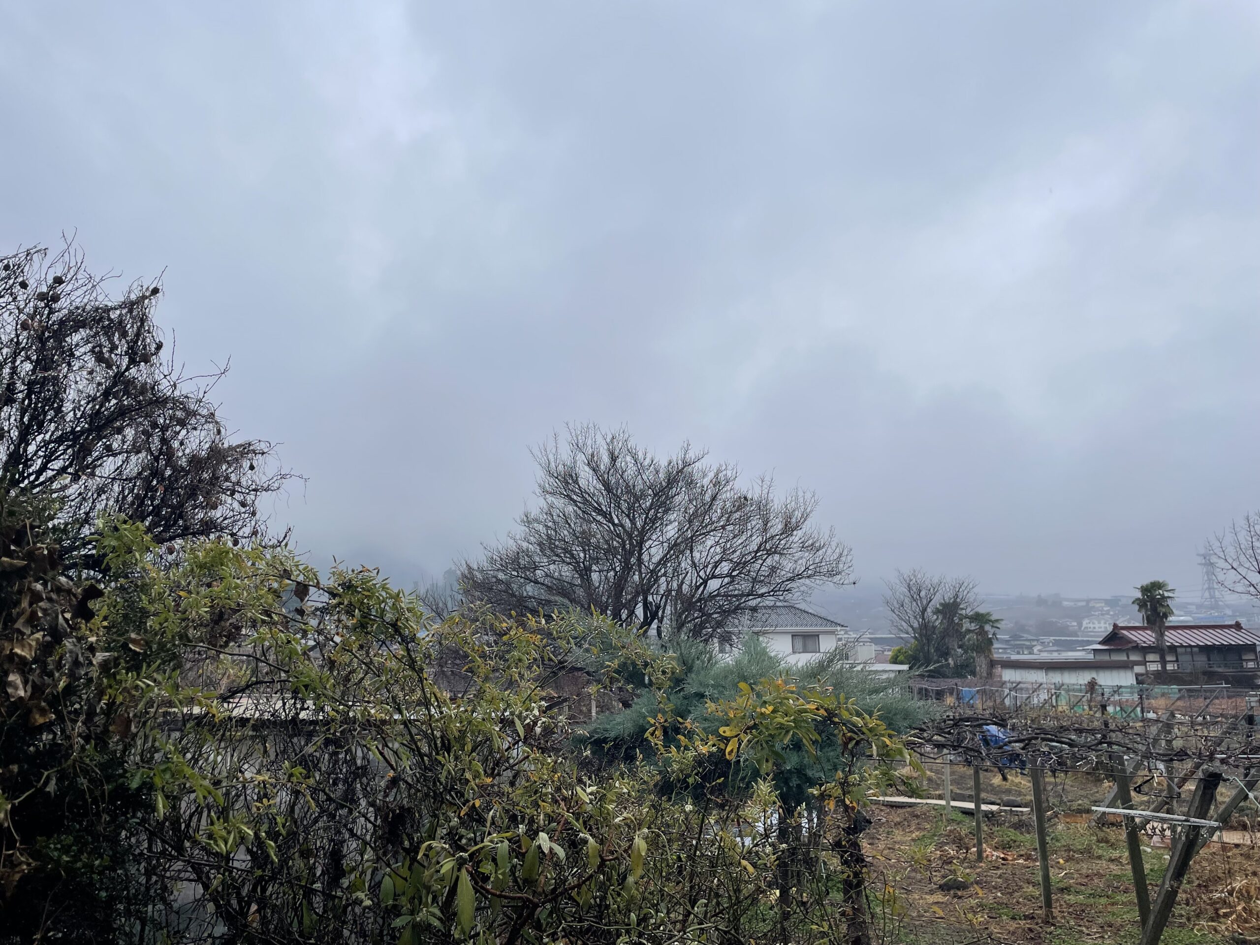 今日は朝から雨 枝切作業は休止 気温が低くないので雪にはならない