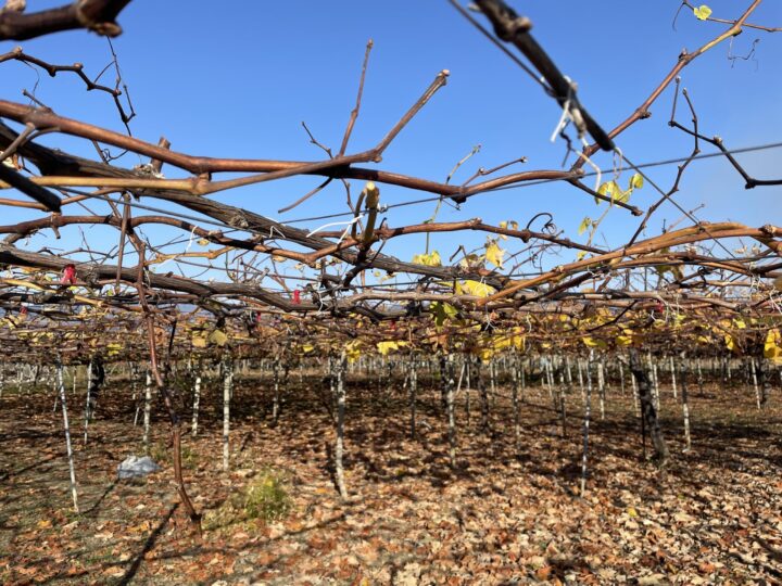 葉が落ち始めた秋のぶどう畑