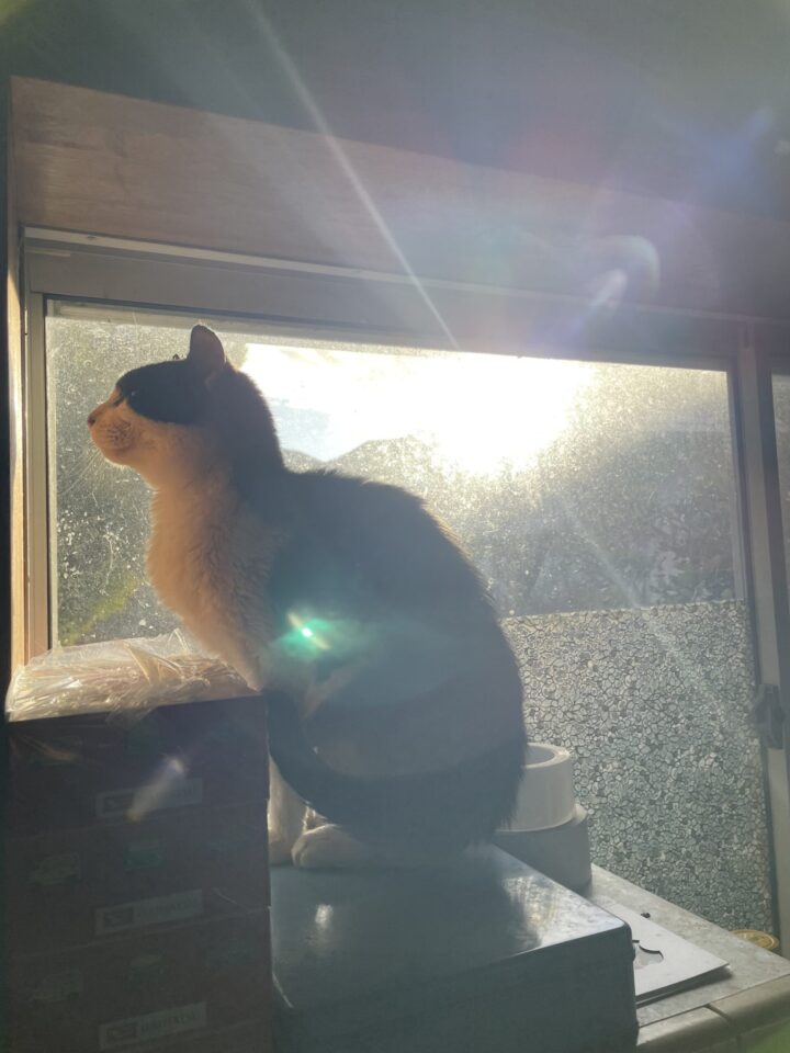 外は寒いが中は暖かいね 昼寝に最適な場所