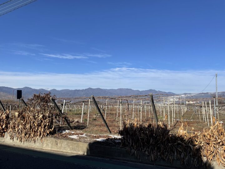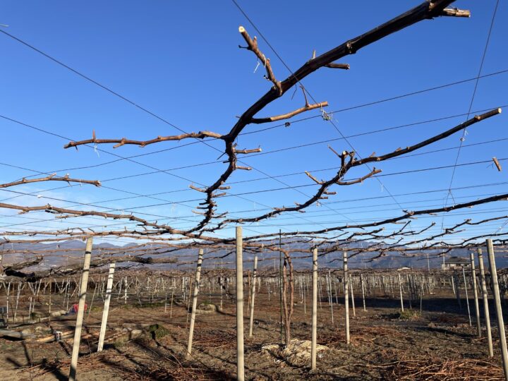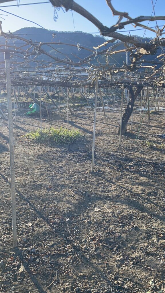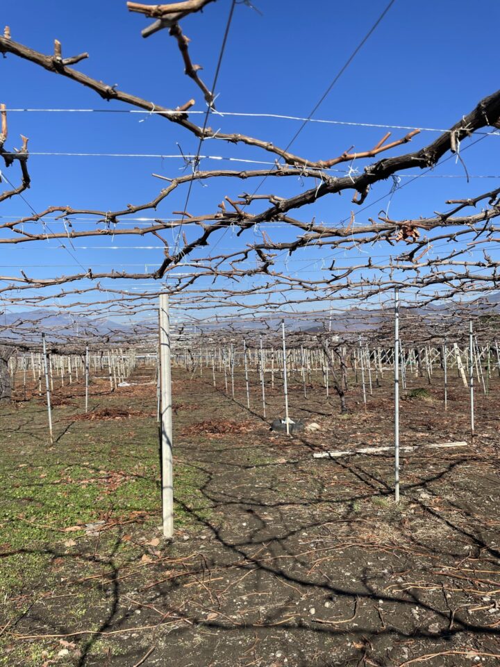 ちょっと寂しい冬のぶどう畑 今年も今のところ暖冬傾向