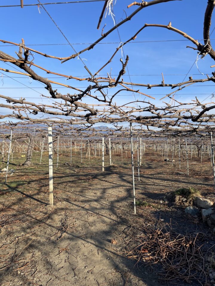 風はないが空気が冷たい 枝切りがほぼ終わったブドウ畑